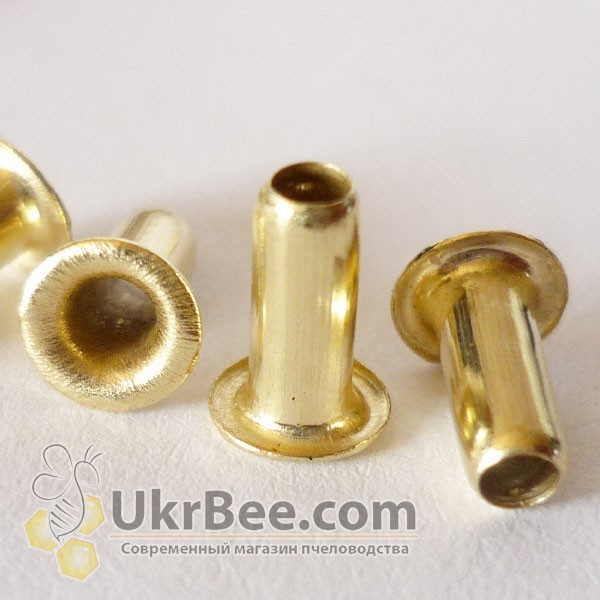 The bushing has a special coating, which protects it from corrosion and rust. The bushing is made in the form of a mushroom and has a hat with a smooth bend for convenient transportation of the wire through the hole. The diameter of the sleeve is only 2.5 mm, which is quite enough for all types of wires used in beekeeping. The height of the sleeve is 6mm with a reserve for all standards of the hive frames. The diameter of the rounded cap 5mm makes it possible for the wire to bend without deformation (without sharp corners).