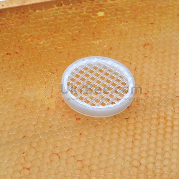 The cap is in the form of a ring with a detachable plastic mesh, a cap made of food plastic is made, which is completely harmless for bees and uterus. Labeling the uterus, using the cap, will take you at least a minimum of time. The mat is covered with a cap directly on the frame and marked with a marker, or a special opaline mark is glued.